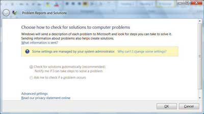 Пользователи не должны игнорировать предложения отослать отчет о сбое (кнопка Send the Report) — его необходимо отсылать при первом соединении с Интернетом, а затем периодически проверять наличие решения проблемы в специальном разделе Control Panel, который называется System and Maintenance/Problem Center (Problem Reports and Solutions). При поступлении решения проблемы следует активизировать соответствующую ссылку и выполнить указанные действия.
