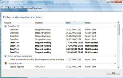 - В приложении внезапно происходит сбой, зависание или утечка памяти — все эти три состояния отслеживаются Windows Vista.