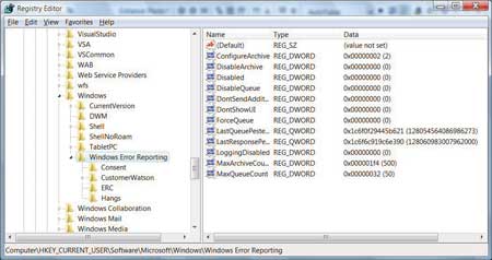 - HKEY_LOCAL_MACHINE\ Software\Microsoft\Windows\ Windows Error Reporting.