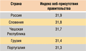по уровню индекса присутствия правительства в веб-пространстве