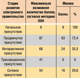Конечно, все вышеприведенные цифры относятся в среднем ко всей стране. Если же говорить об отдельных регионах, то картина может оказаться совсем иной. Если попытаться оценить рейтинг готовности к электронному правительству по методике ООН не для всей России, а лишь для Москвы, то данные получатся очень даже неплохими (табл. 8 и 9).
