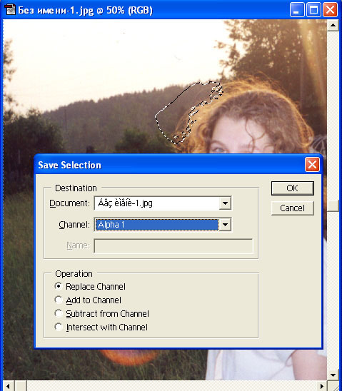 Рис. 12. При сохранении очередного выделения его нужно сохранить в ранее созданный канал Alpha1