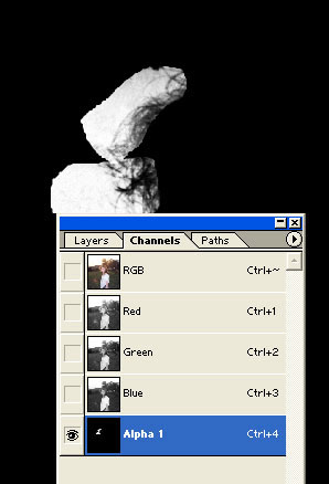 В начале рассмотрим менее трудоемкий способ. В качестве основы для создания маски возьмем один из RGB-каналов. Просмотрите в палитре Channels (рис. 3), в каком канале (Red, Green или Blue) фрагмент, отделяемый от фона, выглядит наиболее контрастно. Просмотр каналов осуществляется щелчком мыши по изображению глаза на палитре Channels. В рассматриваемом случае я выбрал Red-канал. На его основе и будет показано, как создавать маску.