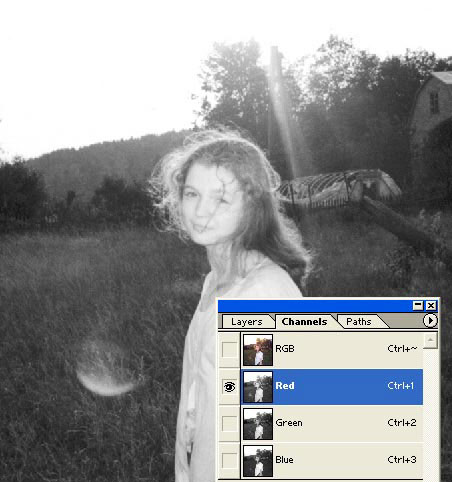 Рис. 3. Red-канал подходит для отделения волос от более темного фона