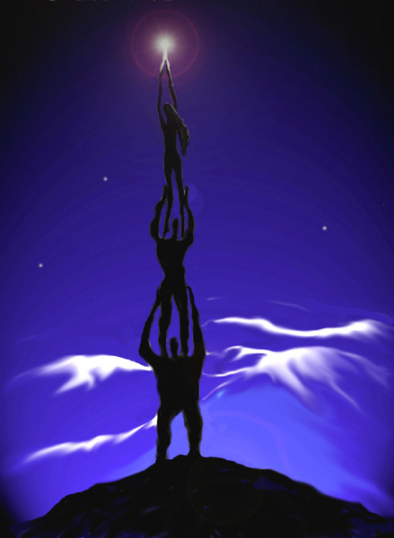 Если свечение факела оказалось слишком ярким, фильтр Lens Flare можно ослабить, используя команду: Edit → Fade Lens Flare. В довершение необходимо нарисовать блики от факела на фигурах — и изображение готово. Таким образом, рисунок, на создание которого традиционными средствами ушло бы несколько часов, на компьютере был выполнен всего за несколько минут.