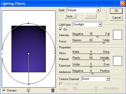 В завершение можно обратить внимание зрителя на центральную часть картины, по команде: Filter →Render →Lighting Effects применив фильтр «Освещение».