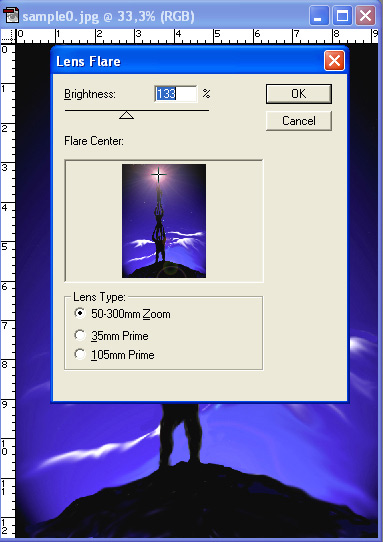 Осталось нарисовать горящий факел. Для этого используем фильтр Lens Flare.