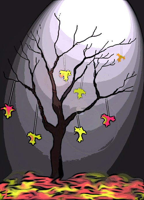 Экспериментируйте с разными сочетаниями фильтров — и вы найдете интересные индивидуальные решения. Я чаще всего использую сочетание фильтров Lighting Effect и Poster Edges. Например, на рис. 17 фон создан при помощи этих двух фильтров. Черные контуры листьев получены в результате применения фильтра Poster Edges. Упавшая листва сделана с помощью инструмента Smudge Tool (Палец).