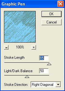 Потом был применен фильтр Graphic Pen, который добавляет косую штриховку рис. 21;, после ослабления фильтра Graphic Pen изображение принимает вид, как на рис. 22.
