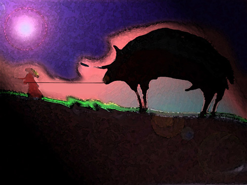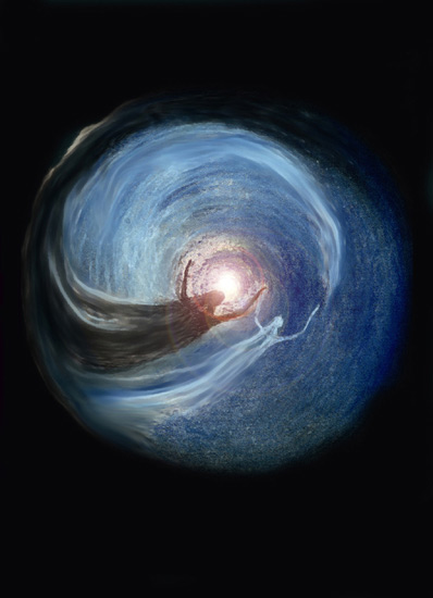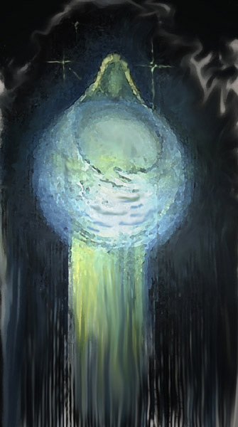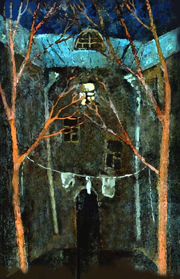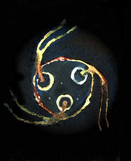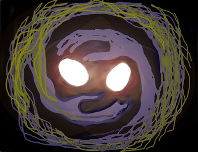 В начале статьи я упомянул о том, что достаточно часто те задумки, которые трудно реализовать с помощью традиционных средств рисования, можно промоделировать с помощью Photoshop. Приведу два примера. На рис. 29 показан один из моих набросков, выполненный гуашью. Выбрав в качестве материала гуашь, я так и не смог реализовать свой замысел — передать свет двух лун сквозь прозрачные облака или пламя. Гуашью прозрачные облака или пламя передать очень сложно, в то время как средства Photoshop позволяют это сделать легко.