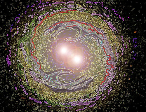 Экспериментирование с фильтрами весьма увлекательный процесс. В моей практике бывало и такое, что в процессе работы первоначальная идея трансформировалась и изображение благодаря фильтрам наполнялось новым содержанием. Например, на рис. 27 представлен набросок, а на рис. 28 — законченное изображение. Сначала я хотел изобразить гнездо, образованное переплетенными руками, которые оберегают будущие жизни, однако после стилизации посредством применения нескольких фильтров первоначальная идея осталась в зачаточном состоянии: рисунок изображает некоторое подобие космического зарождения жизни (рис. 28).