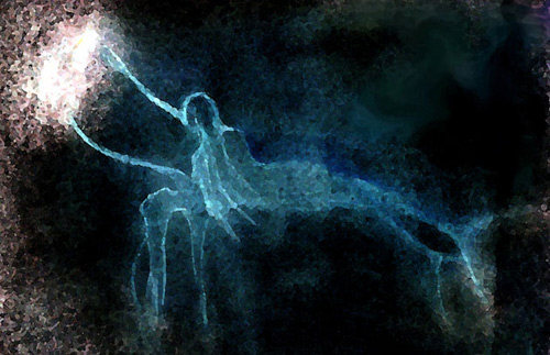 «Хранящая землю» (рис. 38) — при создании данного изображения использовались фильтры Watercolor и Lighting Effect. «Летящая от забот» (рис. 39) — фильтры Sponge, Lens Flare, Poster Edges. «Танец» (рис. 40) — фильтры Watercolor, Lens Flare, Lighting Effects. «Кумир » (рис. 41) — фильтры Watercolor, Lighting Effects.