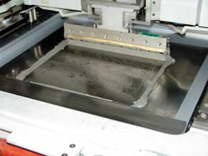 Из загрузчика платы поступают в специальный автомат (Printer) Dek ELA (рис. 5), в котором по трафарету наносится паяльная паста (рис. 6), напоминающая графитовую смазку.