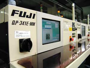 За монтажом крупных микросхем следует монтаж всех остальных элементов. Этот этап подобен предыдущему: платы поступают в принтер DEK, где по шаблону наносится флюс. После этого платы проходят через автоматы поверхностного монтажа High Speed Mounter JUKI KE 2010L и Multi-Function Mounter FUJI QP 341E-MM (рис. 9), где на плату наносятся все необходимые элементы.