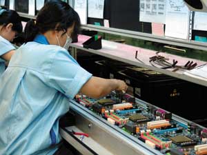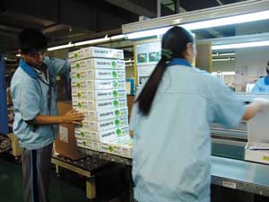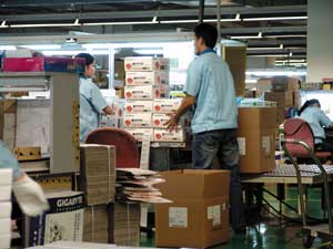 Фабрика Nan-Ping, о который мы расскажем подробнее, специализируется на выпуске материнских плат и видеокарт. Ежемесячный выход ее готовой продукции составляет 400 тыс. материнских плат и 200 тыс. видеокарт. На фабрике эксплуатируются девять линий поверхностного монтажа (SMT), десять линий DIP-монтажа, девять тестовых и восемь упаковочных линий. Фабрика занимает площадь 45 тыс. м2, и на ней трудятся 1600 человек (в основном женщины).