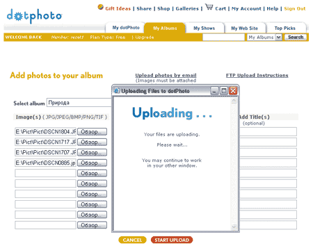 Рис. 1. Загрузка серии изображений через web-форму на dotPhoto