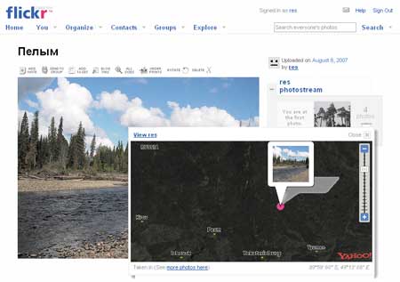 Рис. 10. Привязка снимка к точке на карте на Flickr