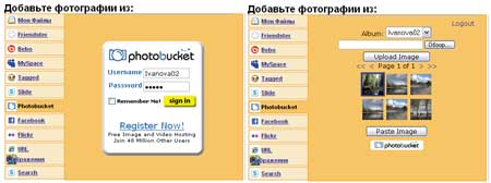Рис. 4. Скачивание изображений на фотосервис Slideс с Photobuket
