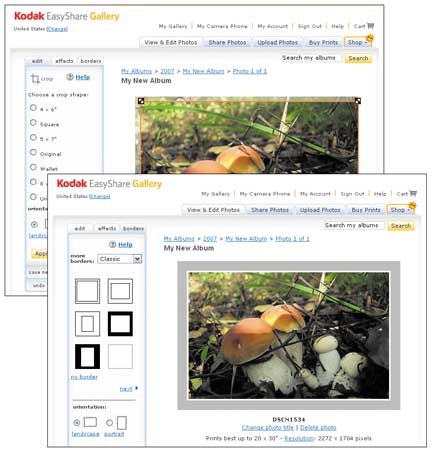 Рис. 7. Редактирование снимка на Kodak Gallery