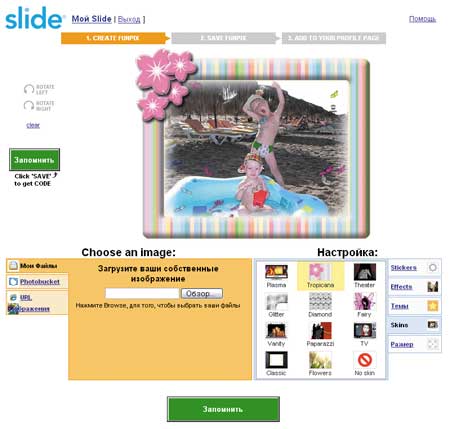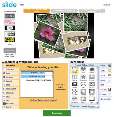 Рис. 8. Создание Flash-слайд-шоу на Slide