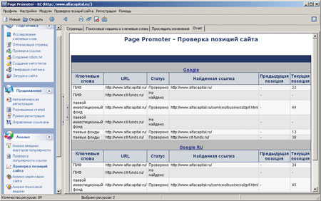 Рис. 4. Проверка позиций сайта средствами Page Promoter