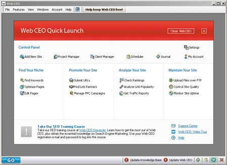 Рис. 5. Основное окно Web CEO с перечнем доступных модулей