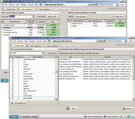 Рис. 6. Исследование ключевых слов средствами Web CEO