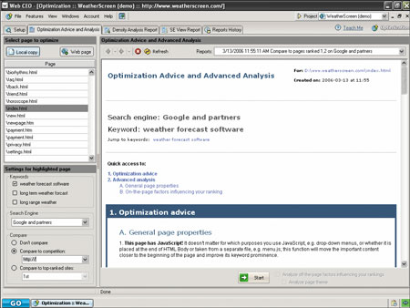 Рис. 7. Получение советов по оптимизации при помощи Web CEO