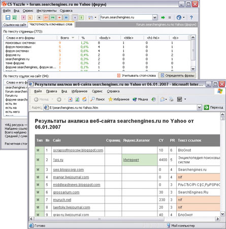 CS Yazzle — полезное решение, представляющее интерес для компаний любого уровня, самостоятельно продвигающих свой сайт в Сети. Данная программа позволяет автоматизировать такие задачи поисковой оптимизации, как первичный анализ текстовой составляющей страниц, выявление конкурентности запросов и управление внешними ссылками. Создаваемые в процессе ее работы отчеты могут быть сохранены либо экспортированы в форматы XLS, CSV и HTML для дальнейшего изучения.