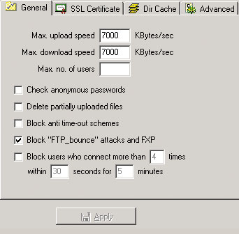 - блокирование атак, которые проводятся с помощью метода FTP Bounce. В случае блокировки обмен данных с сервером разрешен только для клиентов; трансфер между двумя FTP-серверами запрещен;