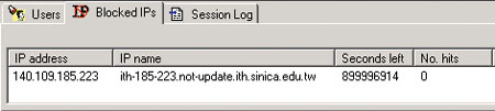 Как и все FTP-серверы, Serv-U поддерживает блокировку конкретных пользователей (рис. 7). Она может осуществляться в течение некоторого промежутка времени или постоянно. Эти два вида блокировки настраиваются в разных меню. Блокировка на время относится ко всем пользователям всех доменов и выполняется через самое первое меню Activity. Время блокировки задается в секундах. Пользователь, блокируемый на неопределенный срок, определяется в настройках каждого домена отдельно.