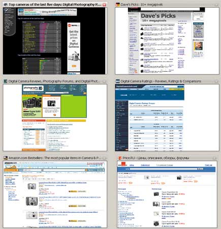 Рейтинги также можно посмотреть у продавцов всевозможной электронной аппаратуры или в системах поиска и сравнения цен на цифровую технику, таких как mySimon, Price Grabber (http://www.pricegrabber.com/home_mostpop.php/topcat_id=11/) или C/Net Reviews (http://reviews.cnet.com/digital-cameras/?legacy=cnet). Кроме того, интересно посмотреть ежедневно обновляемый рейтинг популярности цифровых камер от крупнейшего мирового интернет-магазина Amazon (http://www.amazon.com/exec/obidos/tg/new-for-you/top-sellers/-/photo/all/ref=p_hp_tn_/002-2887608-3201621), но там вы получите представление только об общем настроении покупателей, которые совсем необязательно являются фотолюбителями. Ведут аналогичные рейтинги популярности среди покупателей и наши отечественные ресурсы, такие как Price.ru, но они менее репрезентативны, так как имеют меньшую выборку по моделям и реже обновляются.