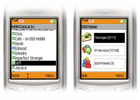 EQO Mobile позволяет синхронизировать контакты из списков друзей, проверять, кто из них находится в онлайн-режиме, совершать и принимать VoIP-звонки Skype, создавать и настраивать собственный профиль, отражающий настроение и место пребывания, загружать картинки и текст с телефона, а также обмениваться текстовыми и графическими сообщениями с друзьями из онлайн-сообществ MySpace, Friendster, Hi5, Multiply и Tagworld. Узнать подробности и скачать EQO Mobile можно на сайте компании. Там же имеется информация о совместимости клиента EQO с различными моделями сотовых телефонов (http://community.eqo.com/forum/currently_supported_phones).