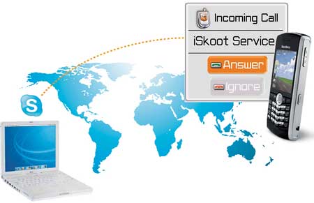 У компании iSkoot есть также Java-приложение для превращения мобильного телефона в терминал, способный работать в сетях Skype. В список официально поддерживаемых моделей входят наиболее популярные аппараты Motorola, Nokia, Sony Ericsson и Palm Treo, но клиент может работать и на других аппаратах, поддерживающих Java MIDP 2.0. Для установки клиента на мобильный телефон необходимо пройти регистрацию на сайте и выбрать одну из поддерживаемых моделей. После закачки выбранного клиента он устанавливается на устройство обычным образом. Установить iSkoot Mobile можно и непосредственно с мобильного телефона, зайдя на сайт разработчика и выбрав пункт Download. Для регистрации на сайте и загрузки клиента необходимо указать страну, телефонный номер в международном формате и логин в сети Skype. Ссылку на загрузку можно получить в виде SMS-сообщения и отправить его с web-сайта компании iSkoot.
