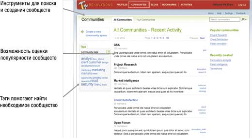 Функция Communities в Lotus Connections (рис. 3) направлена на создание сообществ пользователей с общими интересами.