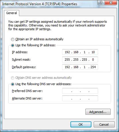 Если же нужно подключиться к локальной сети, в которой не применяется DHCP-сервер, то необходимо вручную присвоить компьютеру IP-адрес и задать маску подсети. Естественно, присваиваемый IP-адрес должен быть из той же подсети, что и все остальные адреса компьютеров этой локальной сети. Кроме того, если в локальной сети имеется маршрутизатор с выходом в Интернет, то для получения доступа в Сеть следует также указать IP-адрес основного шлюза (IP-адрес маршрутизатора с выходом в Интернет).