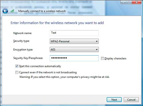 Отметим, что задаваемое имя сети (Network name) используется и как идентификатор беспроводной сети (SSID), и как название профиля сетевого подключение. Впрочем, это не проблема, поскольку созданный профиль впоследствии можно отредактировать, причем при этом предоставляется больше возможностей, чем на этапе его создания.