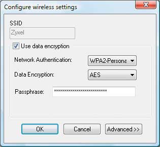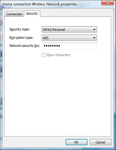 Затем опять щелкните на добавленном профиле правой кнопкой мыши и в контекстном меню выберите пункт Properties (Свойства). При этом откроется окно свойств беспроводной сети Wireless Network properties. На вкладке Security (Безопасность) можно отредактировать способ аутентификации, тип шифрования и ввести ключ шифрования (рис. 9).