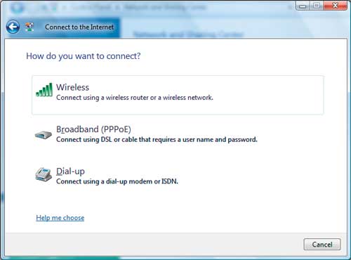 Вариант Connect to the Internet позволяет настроить беспроводное скоростное (с применением протокола PPPoE) или телефонное (c использованием аналогового модема либо ISDN) подключение к Интернету (рис. 11).