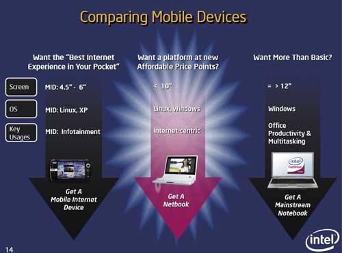 Собственно, MID-устройства и нетбуки как раз и являются теми самыми специализированными дешевыми (по сравнению с ноутбуками) мобильными решениями, которые предназначены для доступа в Интернет.