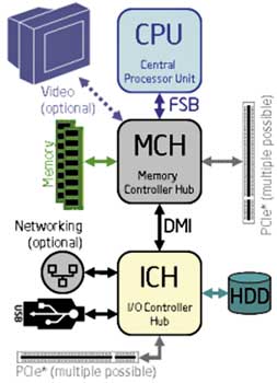 Вместе с процессором Intel Atom N270 компания Intel анонсировала новый чипсет Intel 945GSE Express (южный мост ICH7M), известный под кодовым именем Calistoga, который, как уже отмечалось, тоже является составляющей частью платформы нетбуков (рис. 2). Этот чипсет может быть использован только в паре с процессором Intel Atom N270.