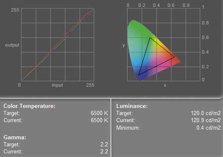 Теперь перейдем к результатам тестирования монитора LG FLATRON W2252TQ. В ходе испытаний монитор подключался к компьютеру по цифровому интерфейсу DVI-D, а для измерения его технических характеристик использовался программно-аппаратный комплекс, включающий спектрофотометр GretagMacbeth Eye-One Display, цифровой осциллограф BORDO 211A и фотодатчик. Спектрофотометр GretagMacbeth Eye-One Display вкупе с программами ProfileMaker Pro 5.0.5, Eye-One Match 3.0.6 и CHROMIX ColorThink 2.1.2 применялся как для калибровки монитора, так и для измерения яркости монитора, контраста, равномерности яркости, равномерности цвета по всему полю экрана, а также для определения цветового охвата, созданного в ходе калибровки монитора профиля. Кстати, не следует путать цветовой охват монитора и цветовой охват профиля, так как это далеко не одно и то же. Для нас наибольший интерес представляет цветовой охват профиля, поскольку именно с ним имеет дело пользователь.