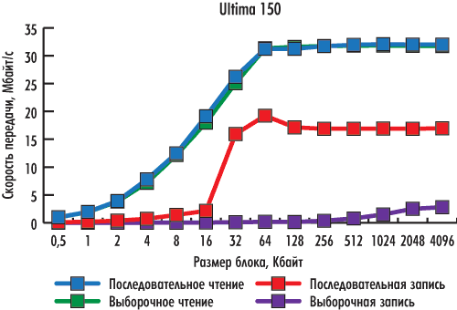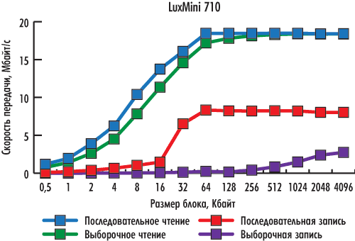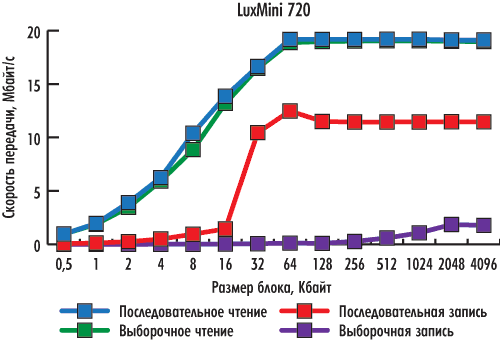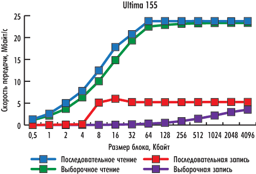 Слабенькими оказались модели LuxMini 710 и LuxMini 720. Они также не преодолели обязательного рубежа. Немного лучше показала себя флэшка Silicon Power Ultima 155 — ее максимум составил 23,5 Мбайт/c на чтение и всего 5,2 Мбайт/c на запись. Однако данной флэшке это простительно из-за наличия встроенного картридера MicroSDHC, который, смеем заметить, наверняка повлиял на скоростные характеристики USB-карты.