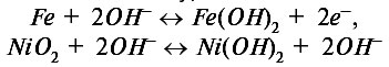 В элементе Эдисона используются железный анод и катод из диоксида никеля, погруженные в щелочные электролиты. При этом реакции на электродах описываются уравнениями: