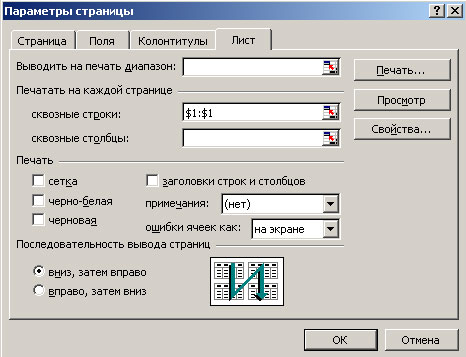 По умолчанию заголовки столбцов выводятся только на первой странице. Чтобы они печатались на всех страницах, в меню Файл выберите команду Параметры страницы > Лист и в группе Печатать на каждой странице в поле Сквозные строки укажите строку с подписями столбцов (рис. 16) — заголовки появятся на всех страницах документа.