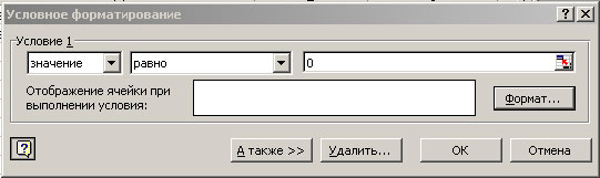 Воспользуйтесь условным форматированием (команда Формат > Условное форматирование) и установите для шрифта ячеек белый формат, например, в том случае, если содержимое ячейки равно нулю (рис. 17 и 18).