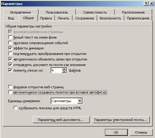 Word 2002 при рисовании автофигур автоматически создает полотно. В случае если вы рисуете большую схему из многих элементов, то это действительно удобно, а вот когда речь идет о нескольких небольших объектах, создание полотна только замедляет процесс. Если в большинстве случаев вам полотно не требуется, лучше от него отказаться, воспользовавшись командой Сервис > Параметры > Общие и убрав флажок Автоматически создавать полотно при вставке автофигур (рис. 2).