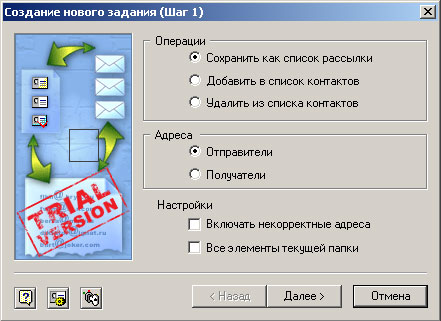 Рис. 31. Первый шаг работы с мастером папка контактов