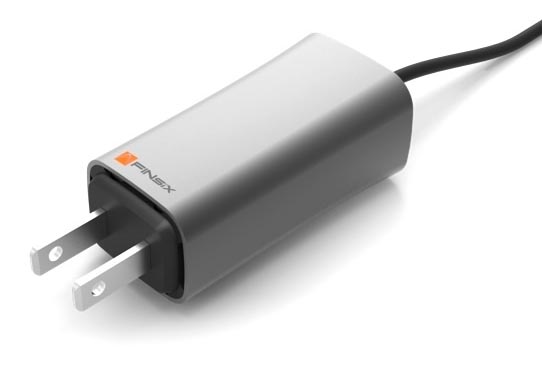 Сотрудникам небольшой компании FINsix удалось найти решение, позволяющее значительно уменьшить размеры и вес адаптеров, обеспечивающих питание портативных ПК от электросети. По данным FINsix, их изделие в 4 раза компактнее и в шесть раз легче по сравнению с ныне выпускаемыми адаптерами аналогичной мощности. Внешне адаптер FINsix напоминает адаптер для питания мобильного телефона или планшета. Сходство усиливает вилка, встроенная в торец корпуса (на фото представлена версия для США). При этом устройство способно питать портативные ПК, потребляющие до 65 Вт. Кроме того, на корпусе предусмотрен порт USB для питания и подзарядки маломощных мобильных устройств (смартфонов, планшетов, портативных медиаплееров и т.д.).